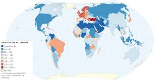 Across more than 170 countries, petrol prices show a wide gap: